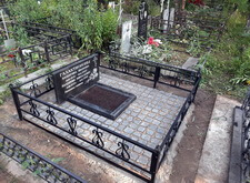 В ходе работы над данным заказом нам предстояло: переустановить покосившийся широкий памятник из чёрного гранита; покрасить обветшавшее от времени ограждение; обновить надписи на надгробье; установить прямоугольный цветник, а также выложить землю на участке гранитной брусчаткой. Приехав на место захоронения мы застали могилу в заброшенном состоянии: на всей её территории росла сорная трава, практически полностью скрывавшая памятник.